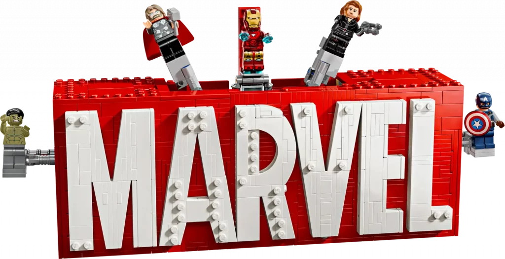The LEGO Marvel Logo & Minifigures set offers a buildable red-and-white Marvel logo with a play feature where minifigures burst out, adding an action-packed touch. Fans of pop art will appreciate the